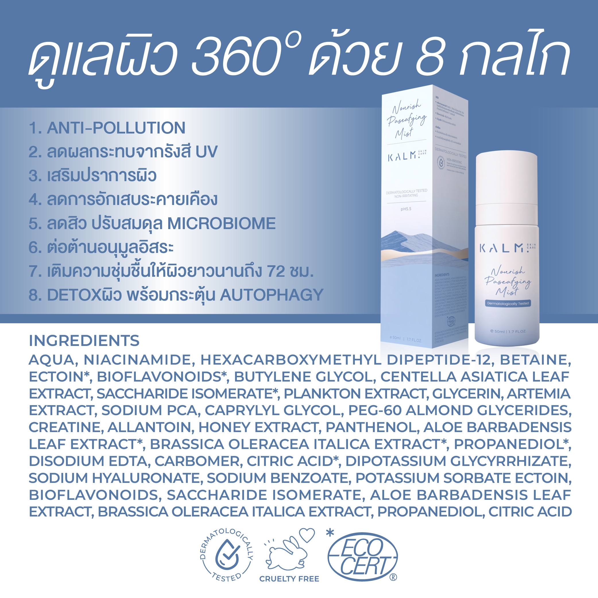 • เหมาะกับทุกสภาพผิว และผิวแพ้ง่ายระคายเคืองง่าย